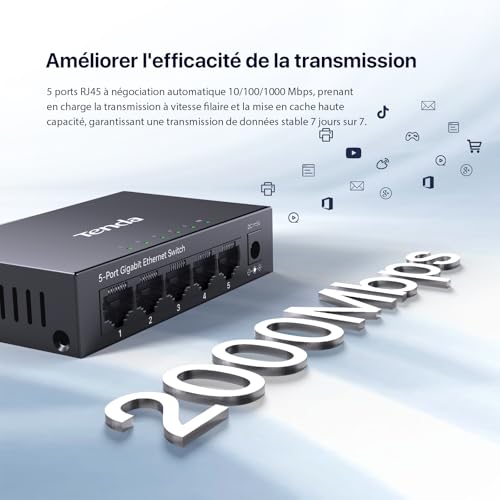Optimisez votre réseau domestique ou professionnel avec ce switch Ethernet à 5 ports, conçu pour une transmission ultra rapide et stable jusqu'à 1 Gbps.