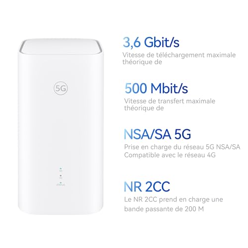 Routeur 5G Wi-Fi 6 AX3000 ultra-performant Découvrez la nouvelle génération de connectivité pour votre domicile ou bureau. Installation simple et universelle Branchez et utilisez : insérez une carte SIM compatible, aucune configuration nécessaire. Fonctionne avec les cartes...