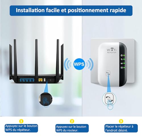 - Installation facile avec WPS : Connectez-vous rapidement en appuyant simplement sur un bouton.