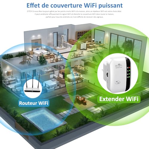 Le répéteur WiFi EITEYI 300Mbps 2.4GHz est la solution idéale pour éliminer les zones d’ombre et booster votre signal internet à domicile, au bureau ou en voyage.