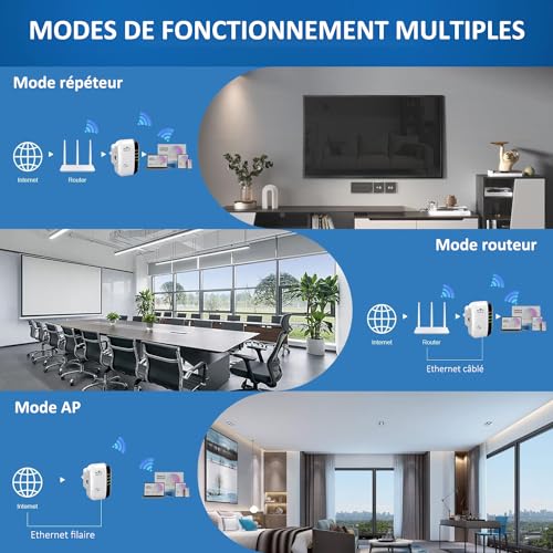 - Double mode AP/RP : Flexible, il s’adapte à tous vos besoins pour étendre ou créer un réseau WiFi performant.